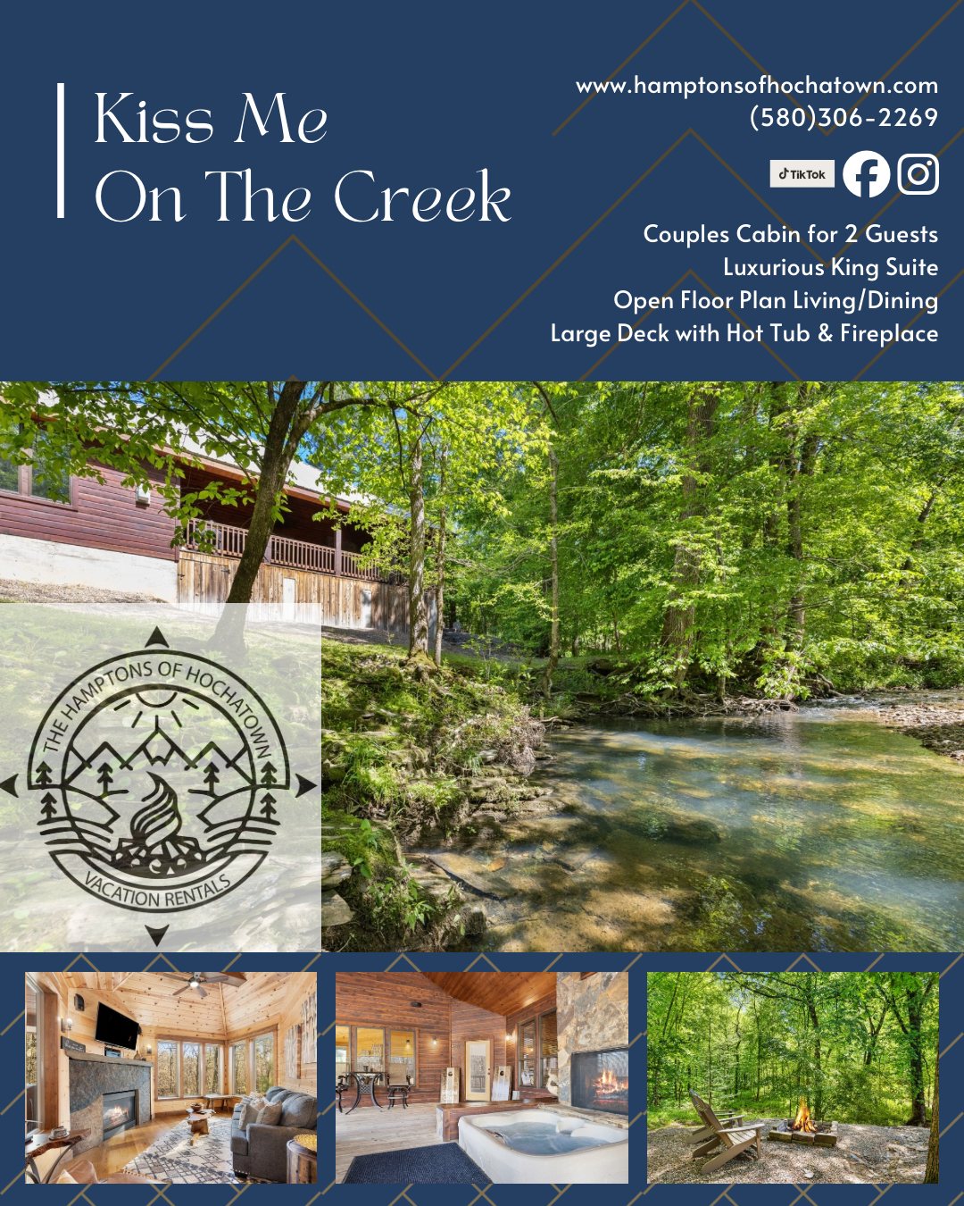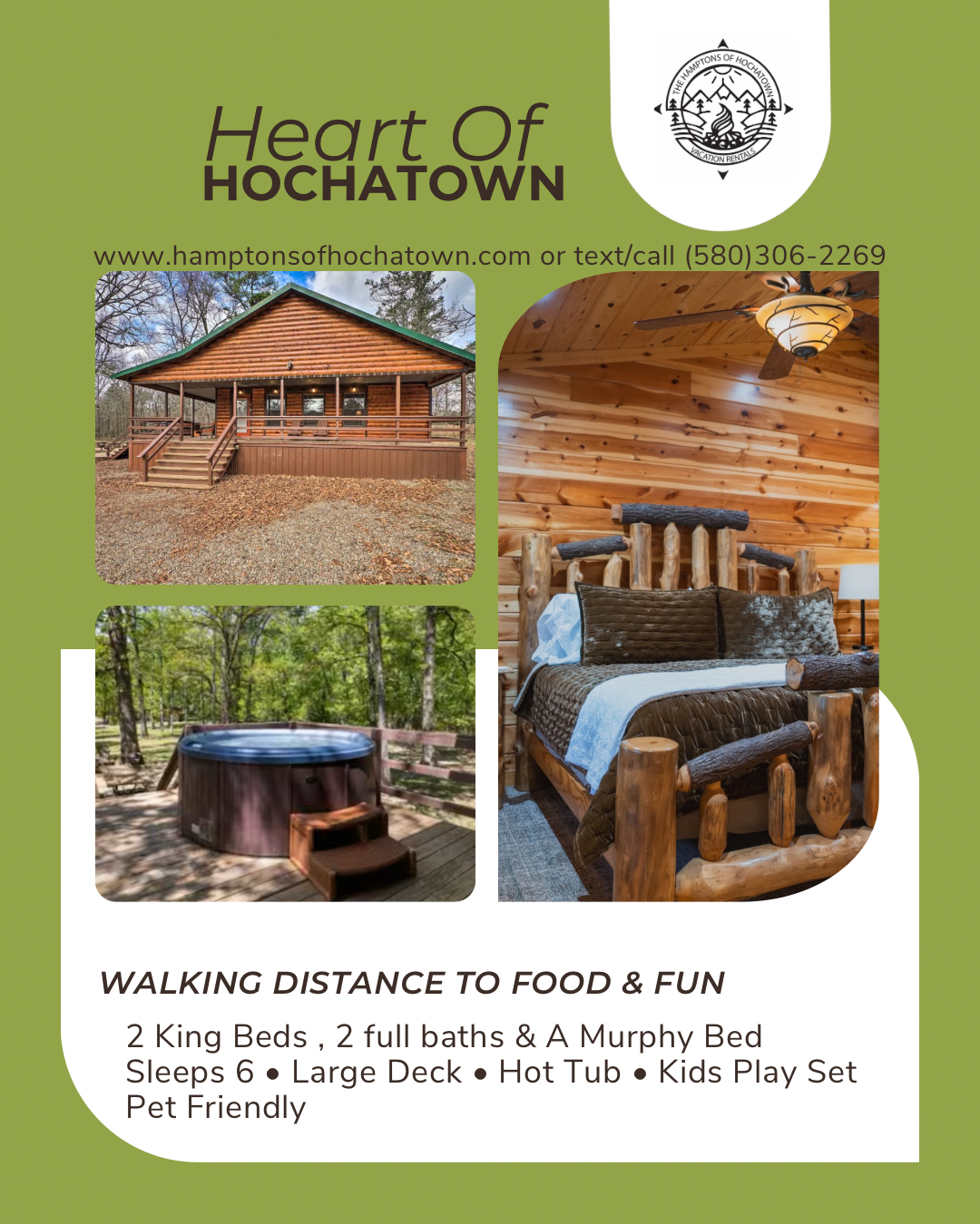 If you are interested in property management services, please give us a call at 580-306-2269 or send an email to reservations@hamptonsofhochatown.com